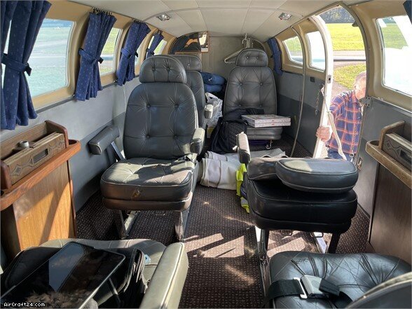 | Interior | | 2 pilots and 6 passengers, brown leather seats, condition 7/10 Pilot seats lamm skin covers Potty toilet (currently removed) |