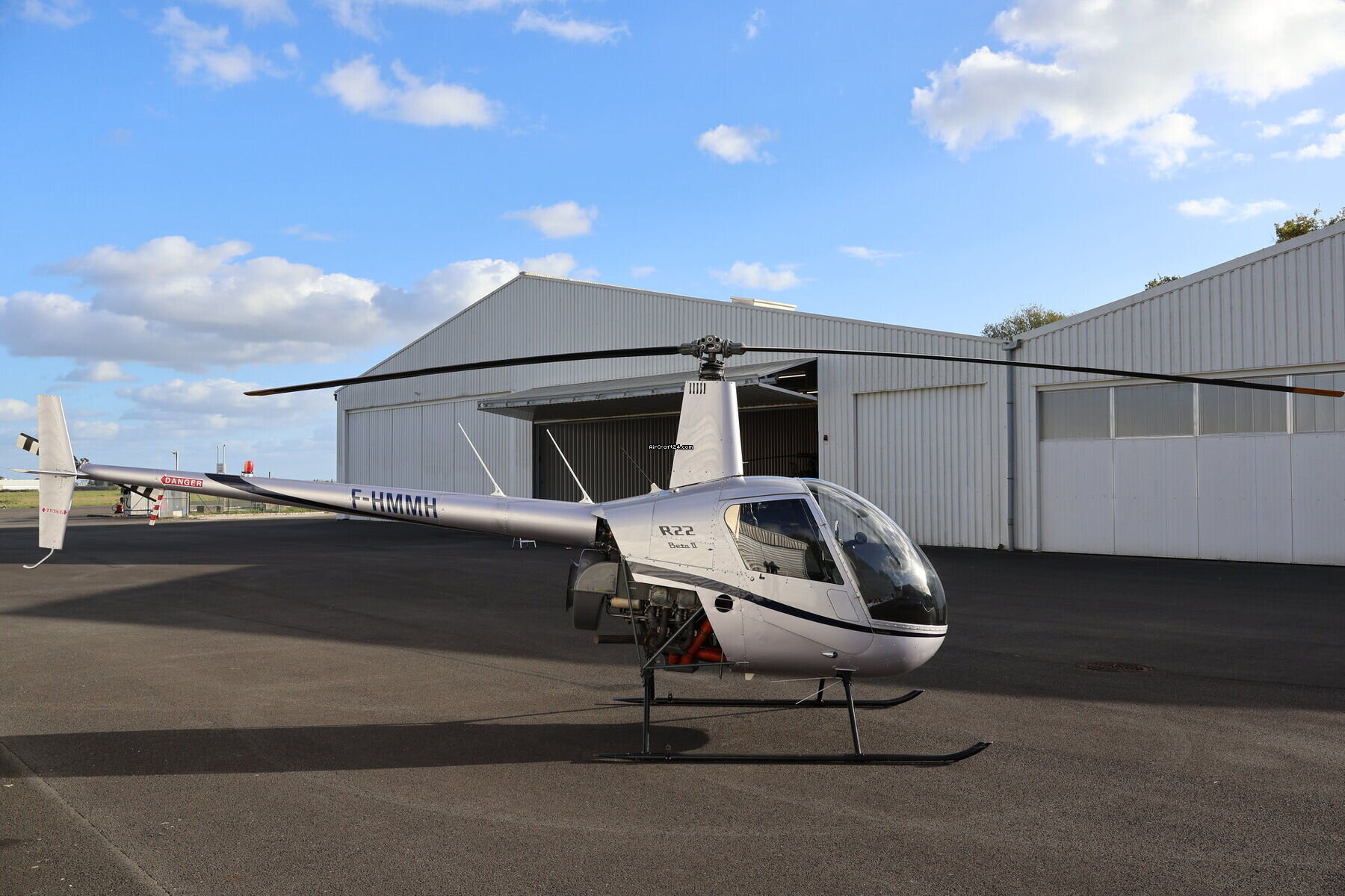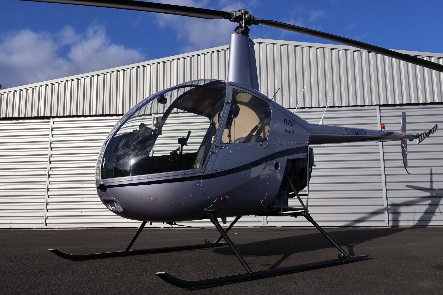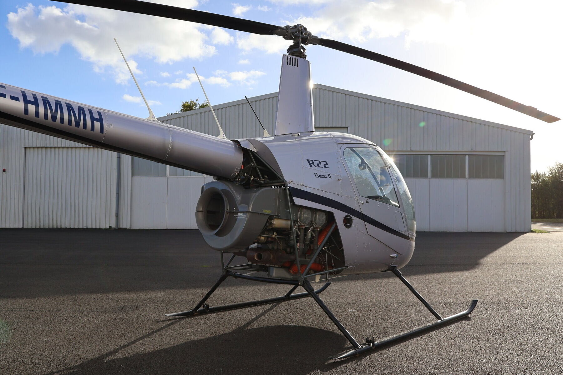 | Base data |  | Type: | Helikopter (Piston) |  | Producent: | Robinson |  | Model: | R22 BETA II |  | Bouwjaar: | 2007 |  | Registration No.: | F-HMMH |  | Serial No.: | 4156 |  | Last annual: | 1/2025 |  | Location: | Frankrijk, Rennes, LFRN |  | Total Time (TTAF): | 4035 h |  | Prijs: | € 90.000 |  | EU VAT paid: | yes |