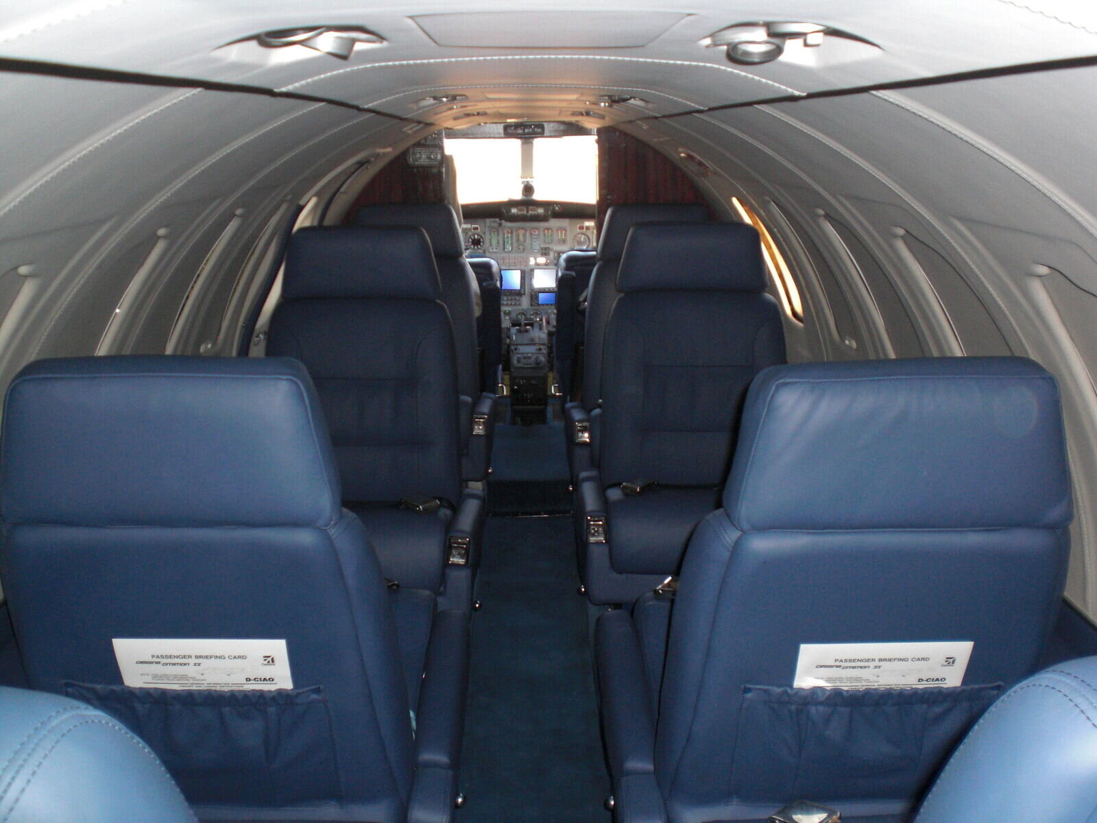 | Interior | The aircraft has a luxury interior with Blue leather seats. Blue wool carpeting and white leather headliners.