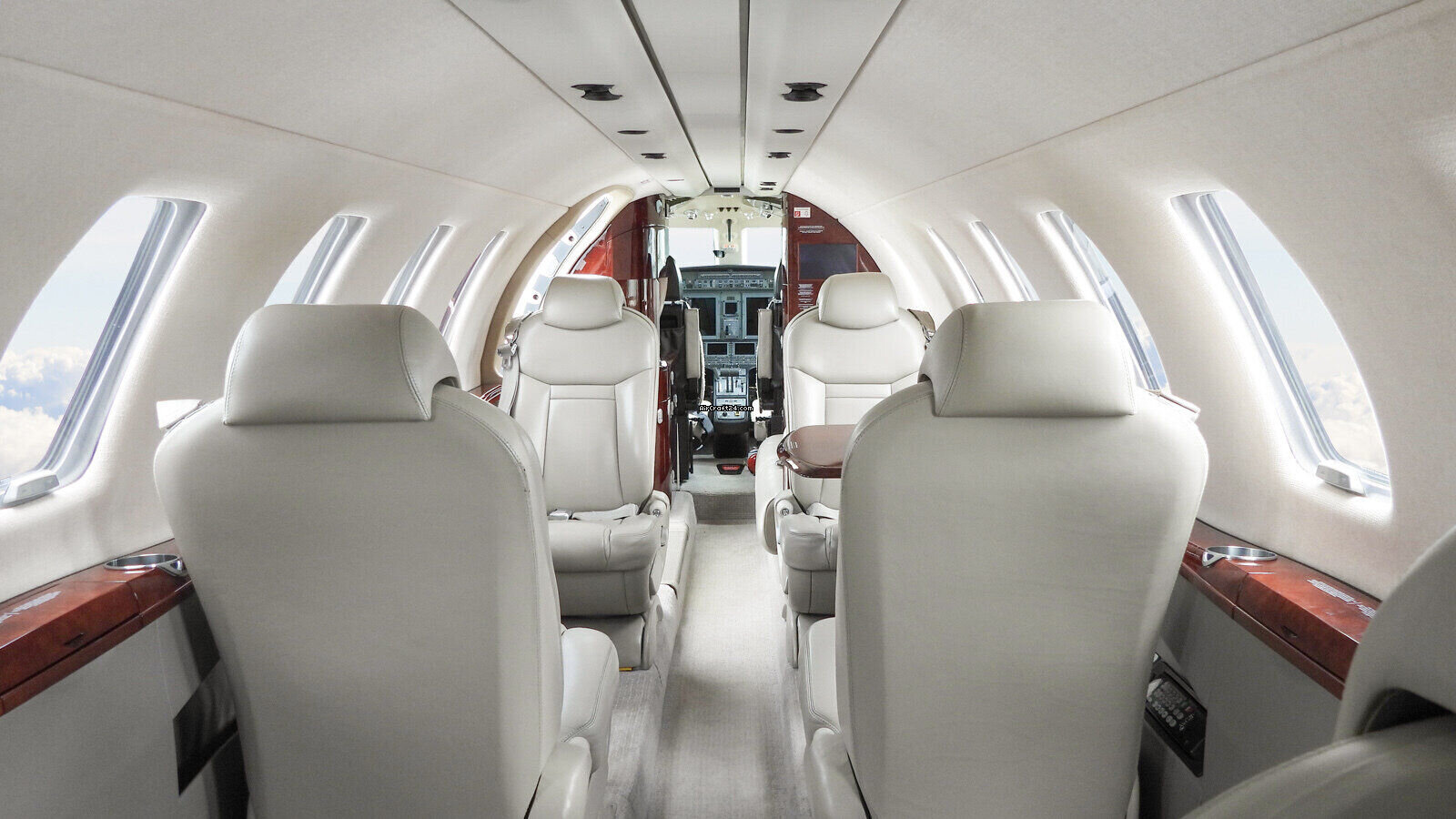 | Interior | | 2 Crew-, 4 Club Seats; 2 single fwd. Seats, double seat Divan (Couch) and belted Toilet Seat (max. 9 Pax), AC Power Outlets, Lavatory with sliding door for privacy, 2 additional foldable slimline Tables on seat 7 & 8, Satcom Telephone, Airshow with Media Center and 2 additional Table Screens, Hot Coffee Bar, electric Window shades. |