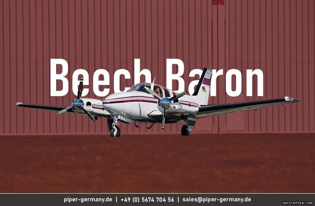 | Base data | | Type: | Multiprop | | Producent: | Beechcraft | | Model: | Baron 58P | | Bouwjaar: | 1980 | | Registration No.: | D-IOTA | | Serial No.: | TJ-312 | | Attributes: | IFR certified IFR equipped Always hangared | | Location: | Duitsland, Calden, EDVK | | Total Time (TTAF): | 2400 h | | Prijs: | prijs op aanvraag | | EU VAT paid: | yes | | No. of passengers: | 6 | | Landings: | 1732 |