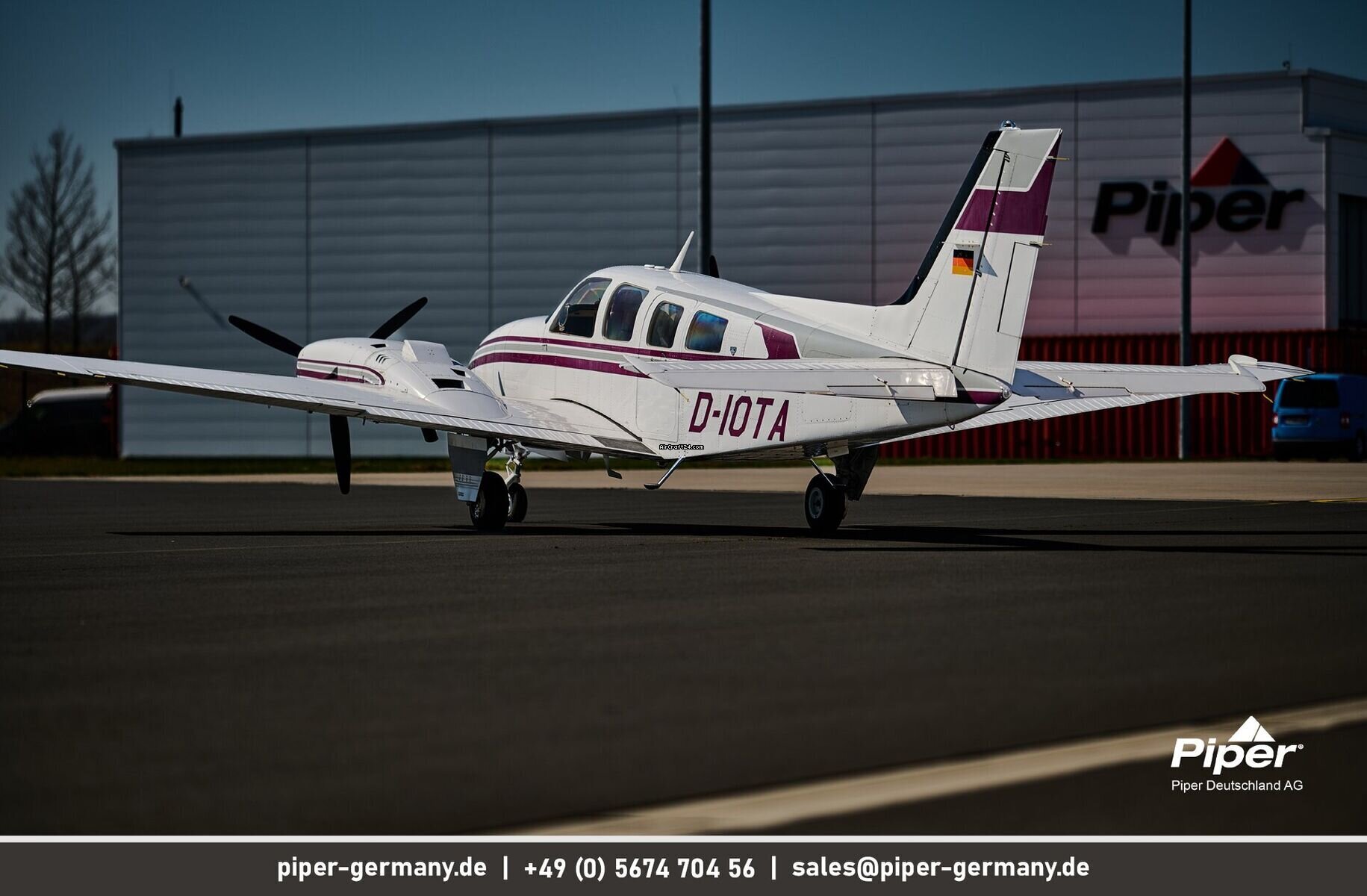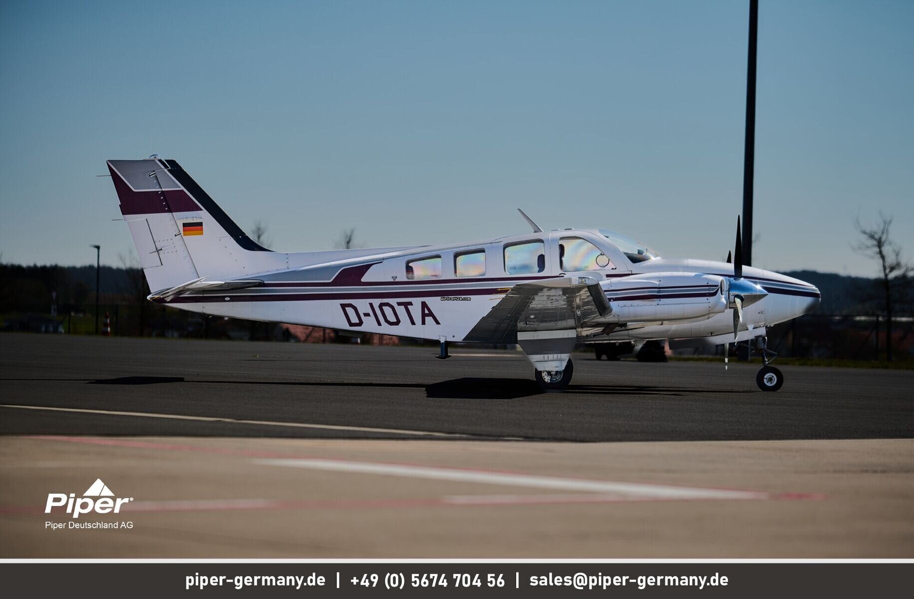 | Opmerkingen | This Beechcraft 58P Baron, manufactured in 1980 in the pressurized cabin configuration, combines reliable twin-engine performance with a modern avionics suite complemented by classic interior elegance. D-IOTA, based at EDVK, is privately owned (three owners since delivery), accident-free, and immediately available.