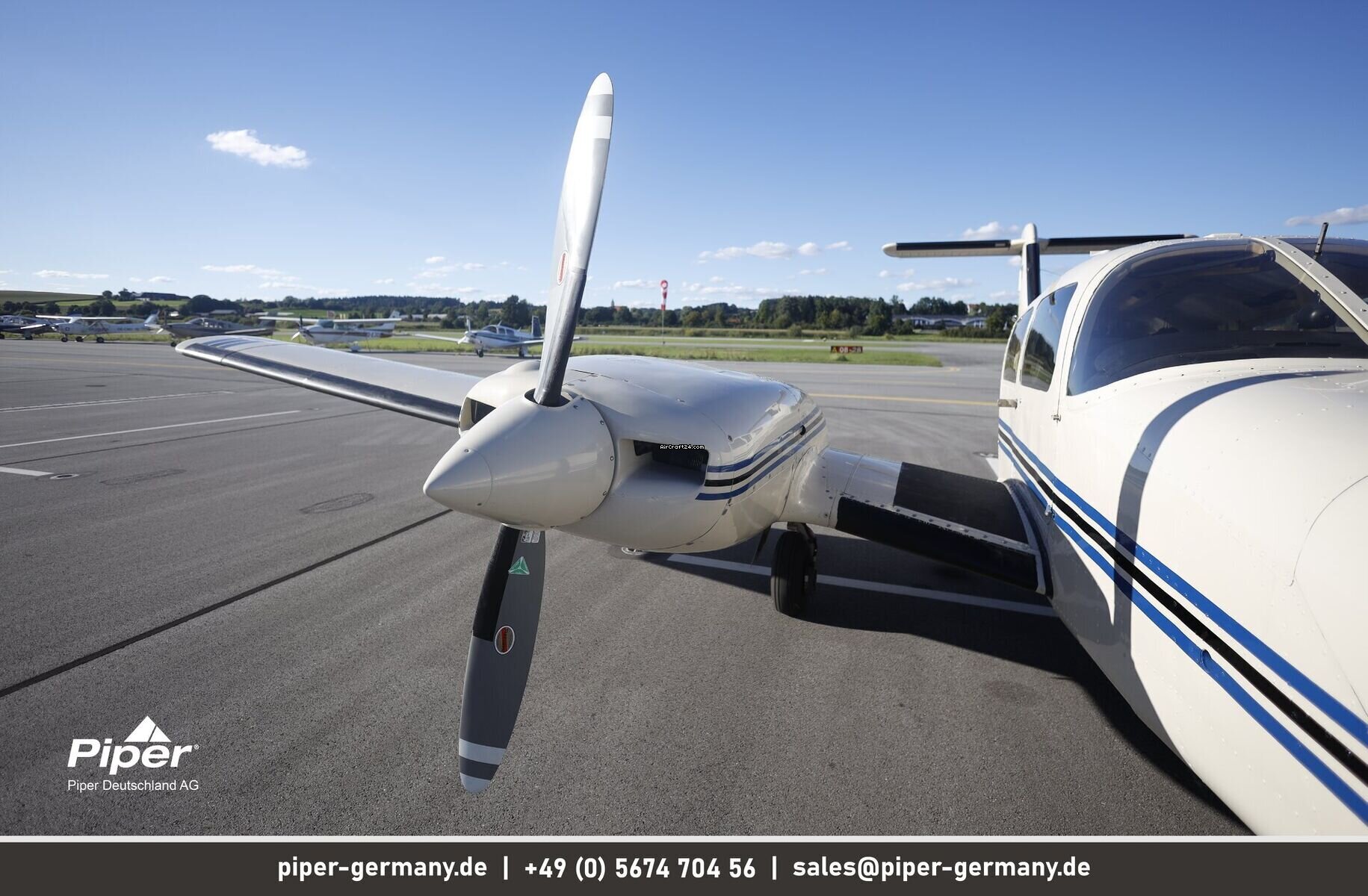 Engine(s) | Number of engines: | 2 | Make/Model: | Lycoming TO-360-E1A6D | Lycoming TO-360-E1A6D | Serial No.: | L-170-737 | L-269-747 | Power: | 180 PS | 180 PS | Total Time: | 1725 h | 1725 h | TBO (hours): | 1800 h | 1800 h | TBO (years): | 12 yrs | 12 yrs | Prop Make/Model: | Hartzell HC-C2YR-2CEUF | Hartzell HC-C2YR- 2CLEUF | Prop Total Time: | 1725 h | 1725 h | Prop Time 1: | 417 h SOH | 417 h SOH |