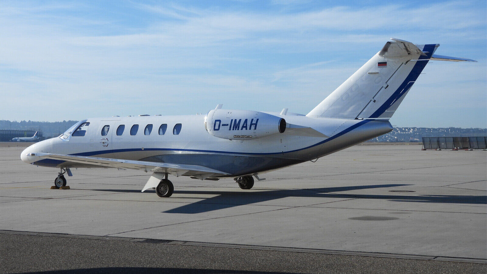 | Base data | | Type: | Jet | | Producent: | Cessna | | Model: | Citation Jet 2+ | | Bouwjaar: | 2012 | | Registration No.: | D-IMAH | | Serial No.: | C525A-0502 | | Location: | Duitsland, Stuttgart | | Total Time (TTAF): | 2750 h | | Prijs: | US$ 4.750.000 (~ € 4.088.835) | | No. of passengers: | 8 | | Landings: | 2600 |