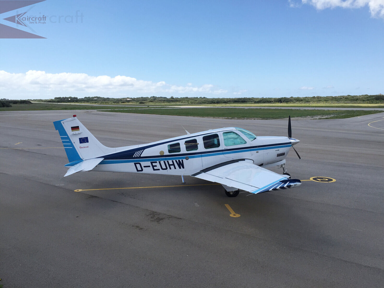 | Base data | | Type: | Single Prop | | Producent: | Beechcraft | | Model: | Bonanza A36 | | Bouwjaar: | 1995 | | Registration No.: | D-EUHW | | Serial No.: | E-2990 | | Attributes: | IFR certified Always hangared | | Last annual: | 4/2025 | | Location: | Duitsland | | Total Time (TTAF): | 1730 h | | Prijs: | € 395.000 | | Net-price: | € 395.000 | | EU VAT paid: | no | | VAT stated sep.: | no |