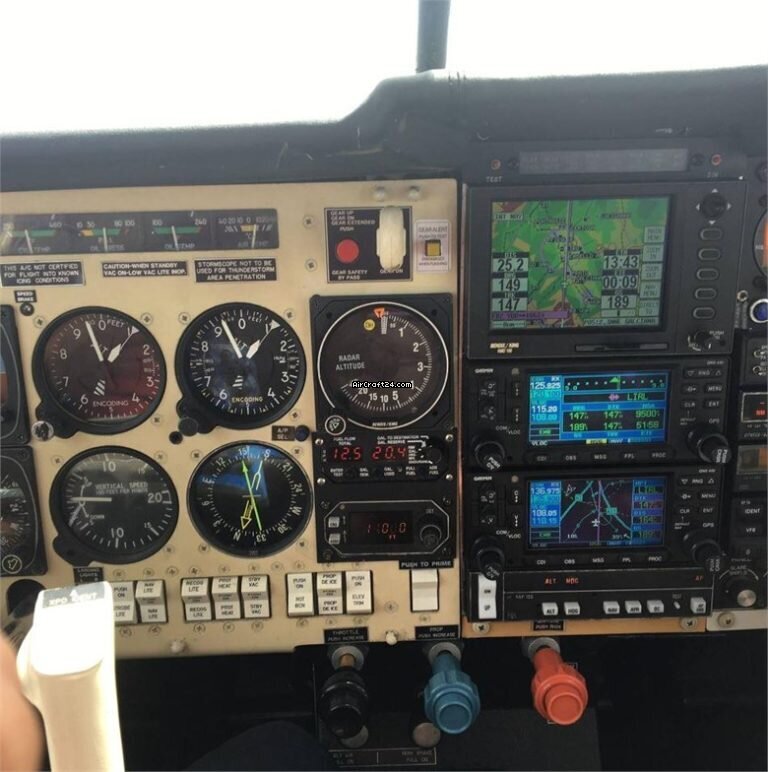 | Avionics | | PS Engineering PAC 24 Audio Panel Marker Beacon 2 Garmin GNS430 (Non WAAS) King KMD150 Moving Map Multi Function Display with GPS Module King KCS55 HSI King Flight Director King KAP140 Autopilot with Altitude Pre-Select WX500 Stormscope King KRA10 Radar Altimeter King KN62A DME King KR87 ADF King KI229 ADF RMI Indicator King KT74 Transponder S PAI 700 Vertical Compass Shadin ADC200 Mini Flow L Digital Fuel Flow JPI 700 Engine Monitor Vacuum Attitude Indicator (Artificial Horizon) Electric Attitude Indicator (Artificial Horizon) Avionics Master Switch Gear Alert System with Antenna |