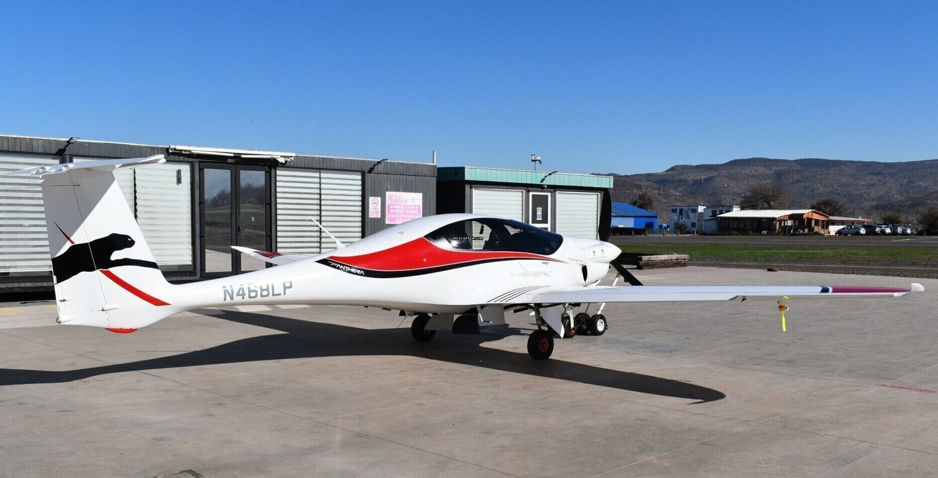 | Base data | | Type: | Single Prop | | Special Type: | Homebuilt/Experimental | | Producent: | Pipistrel | | Model: | Panthera | | Bouwjaar: | 2022 | | Registration No.: | N468LP | | Serial No.: | PX1520021 | | Attributes: | IFR equipped Always hangared | | Last annual: | 10/2025 | | Location: | Chili, SANTIAGO, SCVH | | Total Time (TTAF): | 101 h | | Prijs: | prijs op aanvraag | | EU VAT paid: | no | | No. of passengers: | 4 |