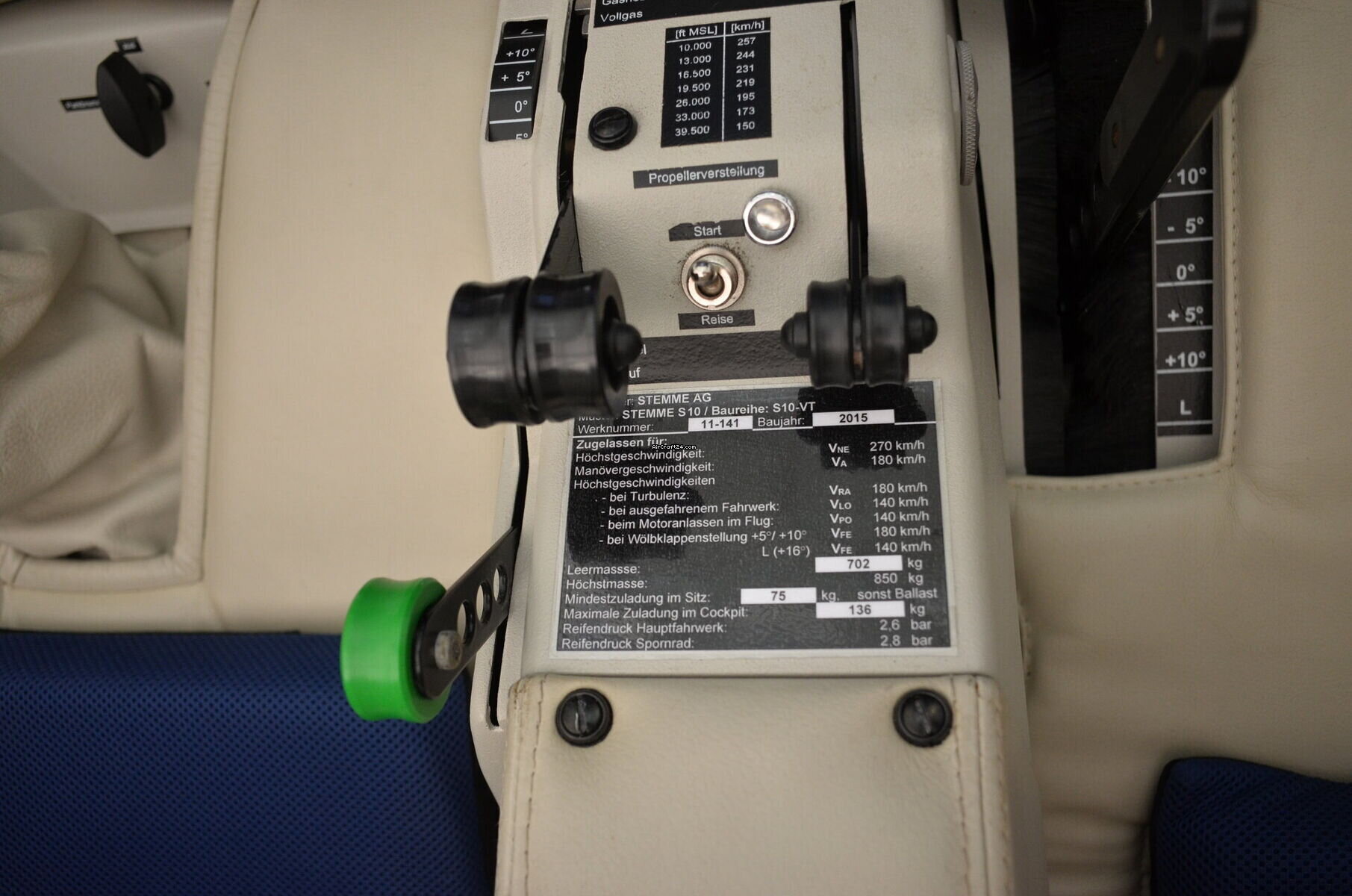 | Opmerkingen | | Das Flugzeug wurde vor 2 Jahren in der Halle stehend durch abstürzende Trümmerteile eines UL Flugzeuges beschädigt. Alle Schäden wurden seitdem durch die Firma Stemme fachgerecht instandgesetzt. Die Kabinenhaube ist neu. Das Flugzeug ist eine der letzten S10 und wurde initial in die USA als Demonstrator/Messeausstellung mit "Vollausstattung" verkauft. |